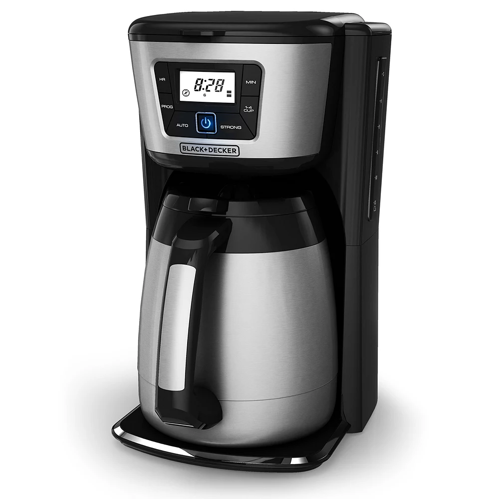 Get your fix throughout the day with the BLACK+DECKER 12-cup thermal coffee maker. The stainless steel thermal carafe is vacuum-sealed to ensure your coffee stays hot and drinkable for hours.