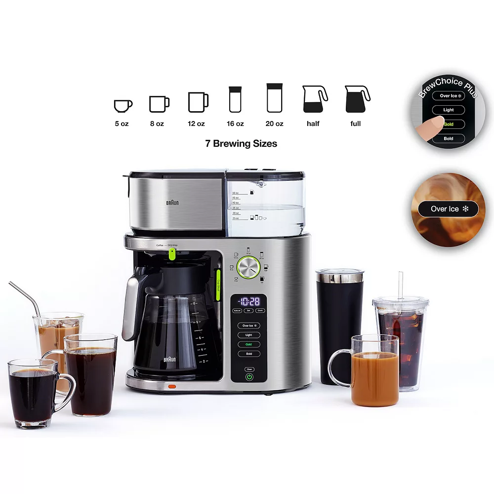 From single-serve to multi-serve and everything in between, the Braun MultiServe Coffee Maker in a sleek stainless steel design easily adapts to your ever changing needs and coffee preferences.