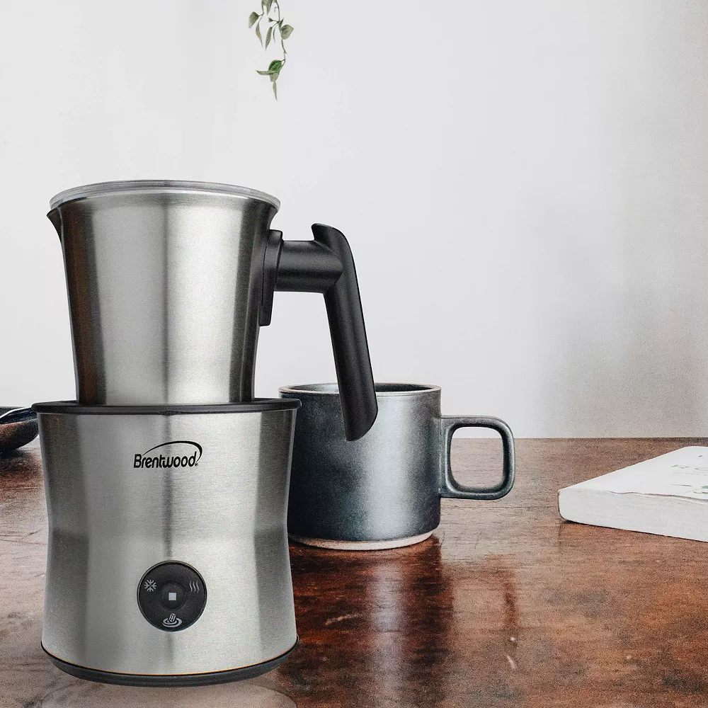 Use the powerful 650w Brentwood Cordless Electric Milk Frother, Warmer, and Hot Chocolate Maker to make thick, creamy froth for cappuccinos, quickly heat your milk for lattes, and make delicious hot chocolate. Features 3 single touch settings – hot froth, cold froth, and heat milk. Easily serve with free range cordless pitcher. The Sleek black and stainless steel design is suitable for any luxuriously styled kitchen counter.
