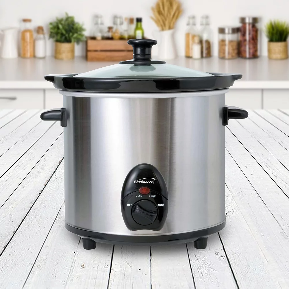The Brentwood 3 Quart Slow Cooker is the perfect addition to any kitchen. With it’s compact size it can fit in any kitchen top. Works well with any other countertops as well. The removable ceramic pot allows for easy of mobility and cleaning as well. The metal body adds a sturdy durability while the Stainless Steel finish gives it a more modern touch. Complete with a tempered glass lid for all around cooking. Enjoy making your favorite home slow cooked meals for everyone to enjoy.