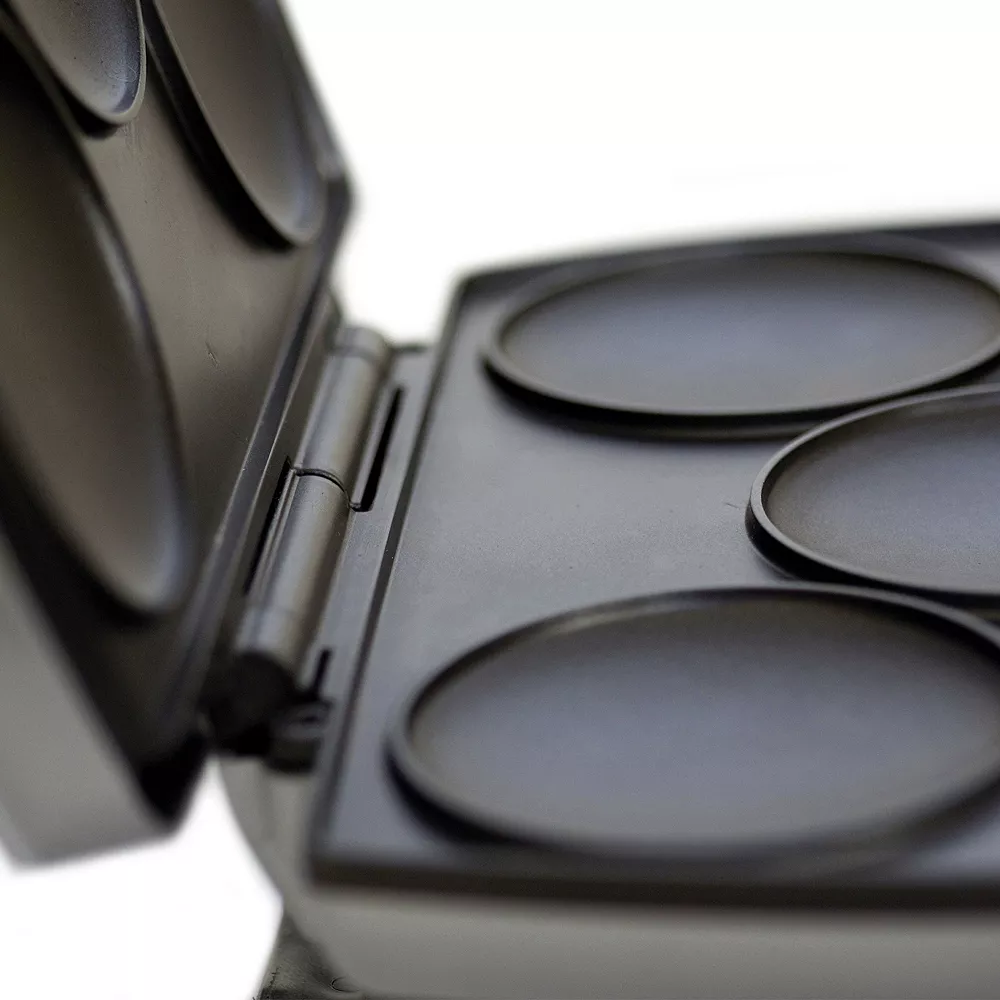 Enjoy the original taste of Venezuela and Colombia in your kitchen. Use the Brentwood AR-136 6 Piece Non-Stick Arepa Maker to produce authentic, round and toasty arepas. Simply plug it in and let the indictor lights signal both power and when the plates are hot and ready. Adjustable heat lets you cook them soft and doughy or nice and toasty. With non-stick plates arepas slide right off and clean up is a breeze. Safety lock lid and vertical feet allow the unit to stand upright for compact storage. You can also use this arepa maker to cook mini pancakes, cornbread, biscuits, pizza crust and more.