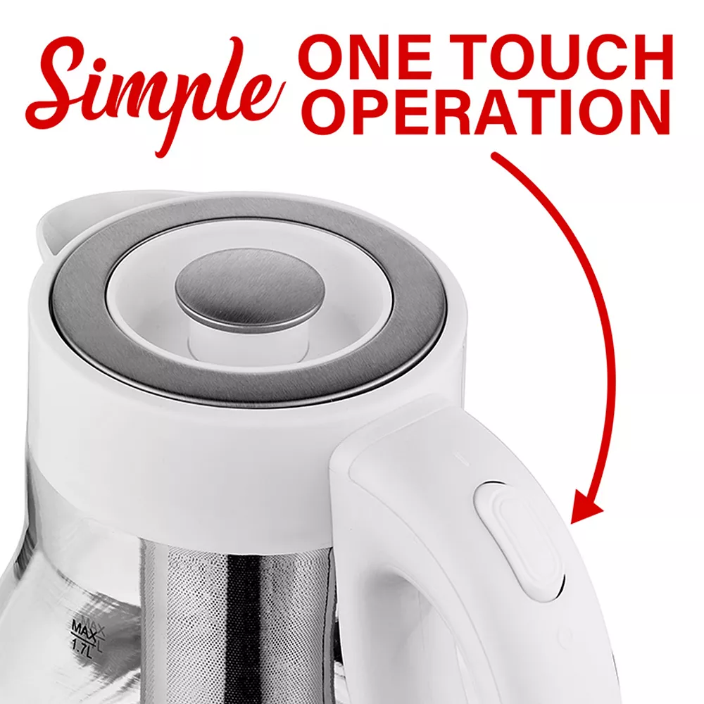 - 1.7L fast boil glass electric kettle