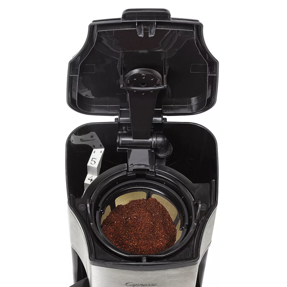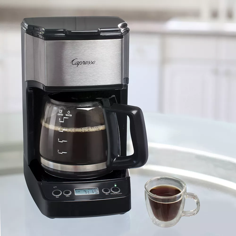 Brew a delicious cup of coffee with this Capresso mini drip programmable coffee maker.