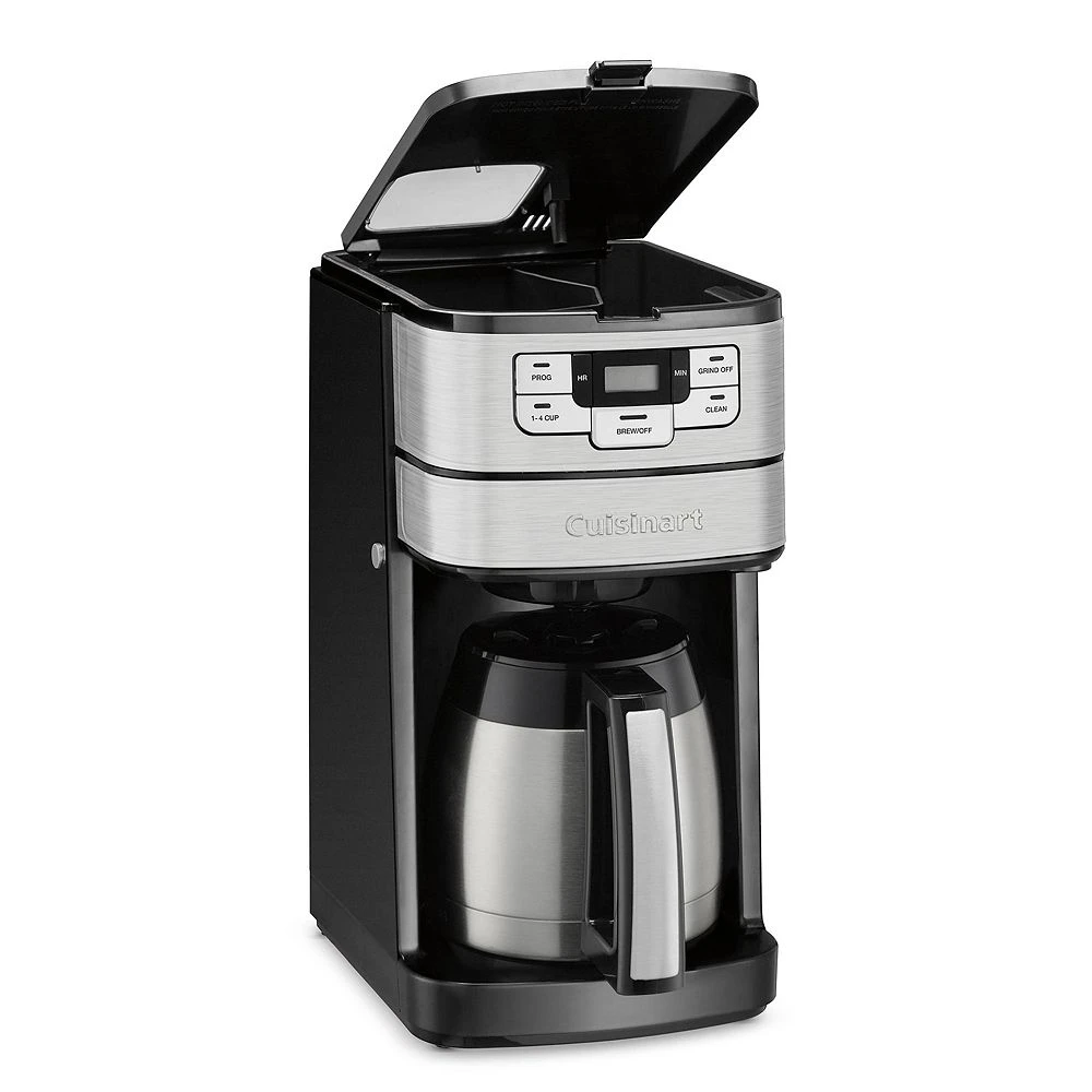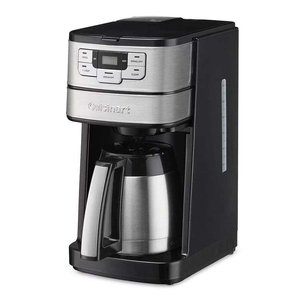 Making fresh-ground coffee at home is easy with the Cuisinart Automatic Grind & Brew 10-Cup Thermal Coffee Maker. Designed with a powerful blade grinder that automatically grinds beans just before brewing, it does all the work for you with programmable 24-hour brew start, auto-off, and 1-4 cup setting options.