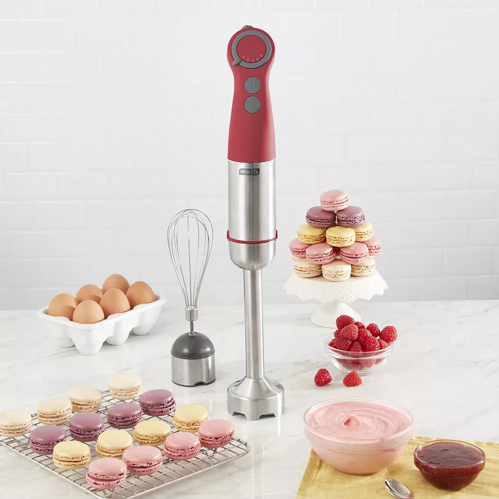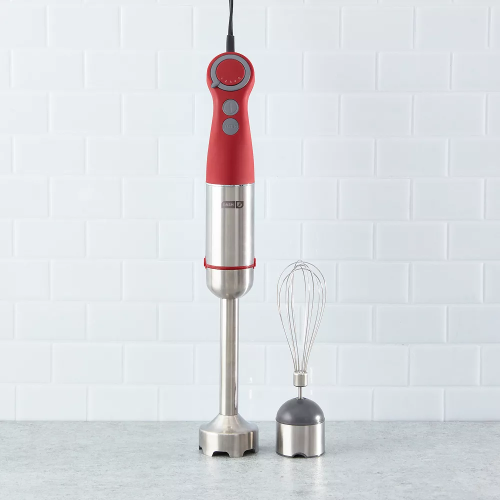 Get pro-chef power with the Dash Chef Series Hand Blender. This 5-speed handheld immersion blender allows for a full range of motion while blending, and comes with Blender and Whisk attachments.