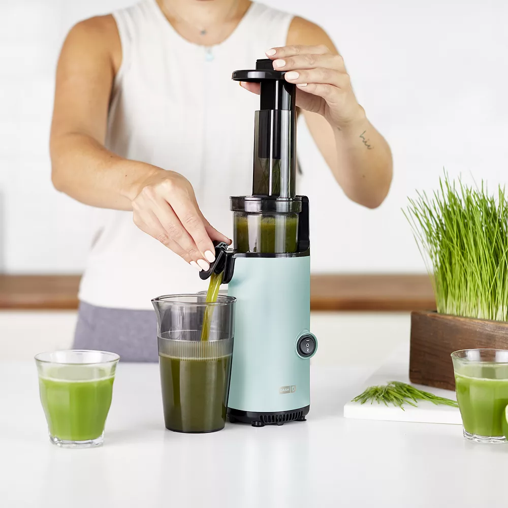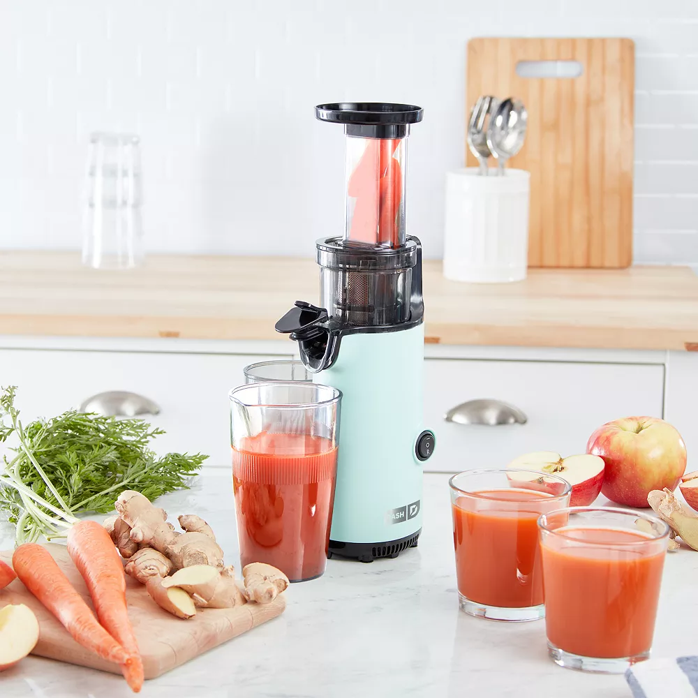 Make delicious cold-pressed juice with the Dash Compact Power Slow Juicer. Just add fresh fruit and let this juicer do the work, fully separating pulp from juice and ensuring you get the most nutrients in your drinks.
