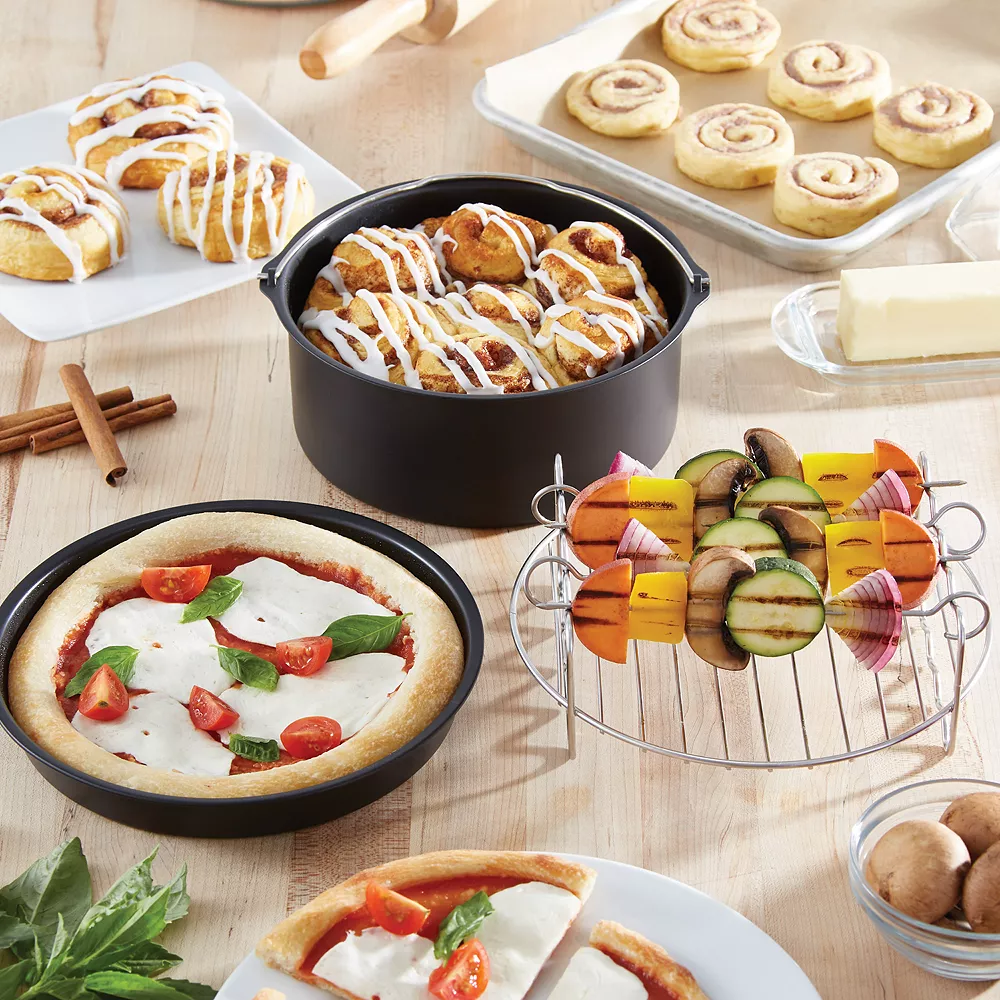 Air fry even more delicious snacks and meals with the Dash Family Size 6-qt. Air Fryer Accessory Pack. Cook everything from tasty kebabs to mini pizzas, homemade quiches and more.