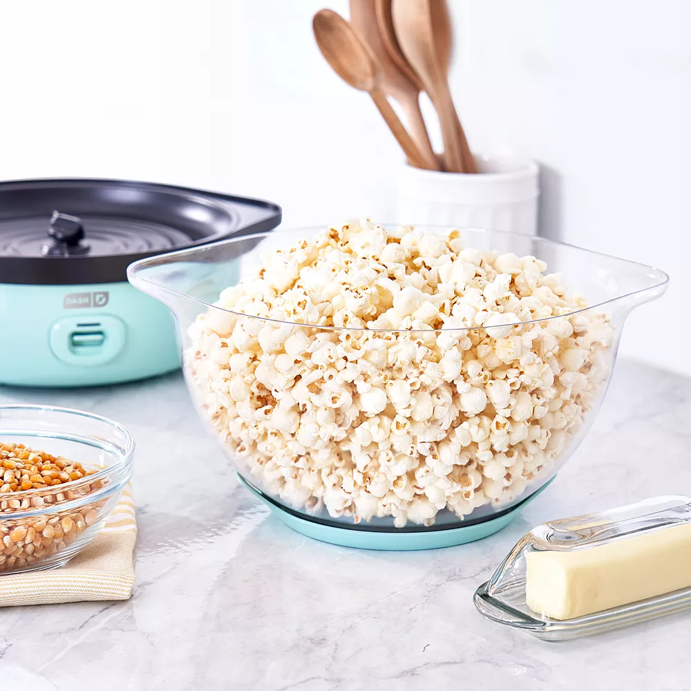 Make up to 24 cups of fresh, buttery popcorn with the Dash SmartStore Stirring Popcorn Maker! Pop popcorn without having to heat the stove with the Stirring Popcorn Maker’s one-touch power: just add kernels, a little oil and press the power button.