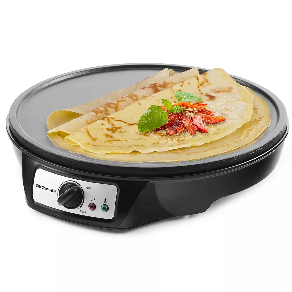 Whip up perfect crepes with the precision control of this Elite Cuisine crepe maker.