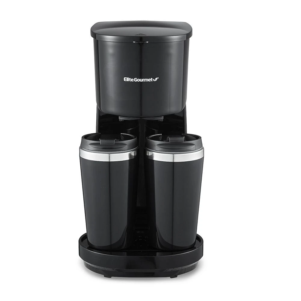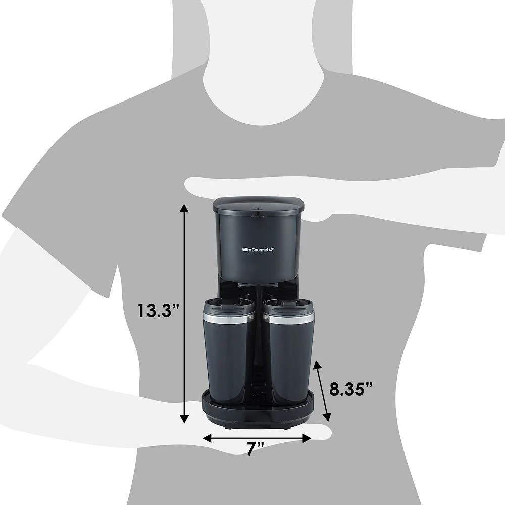The Elite Gourmet Dual Coffee Maker features a compact and sleek design that takes up minimal counter space and stores easily. Perfect for small spaces such as office kitchens, dorm rooms or recreational vehicles.