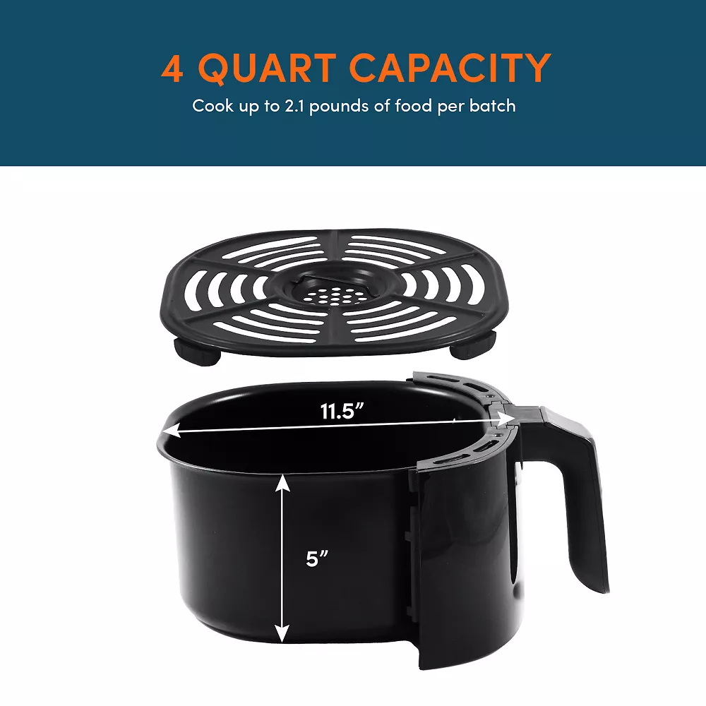 Cook with little to no oil for healthier meals with a delicious crispy, fried taste with the Elite Gourmet 4-qt. Air Fryer.