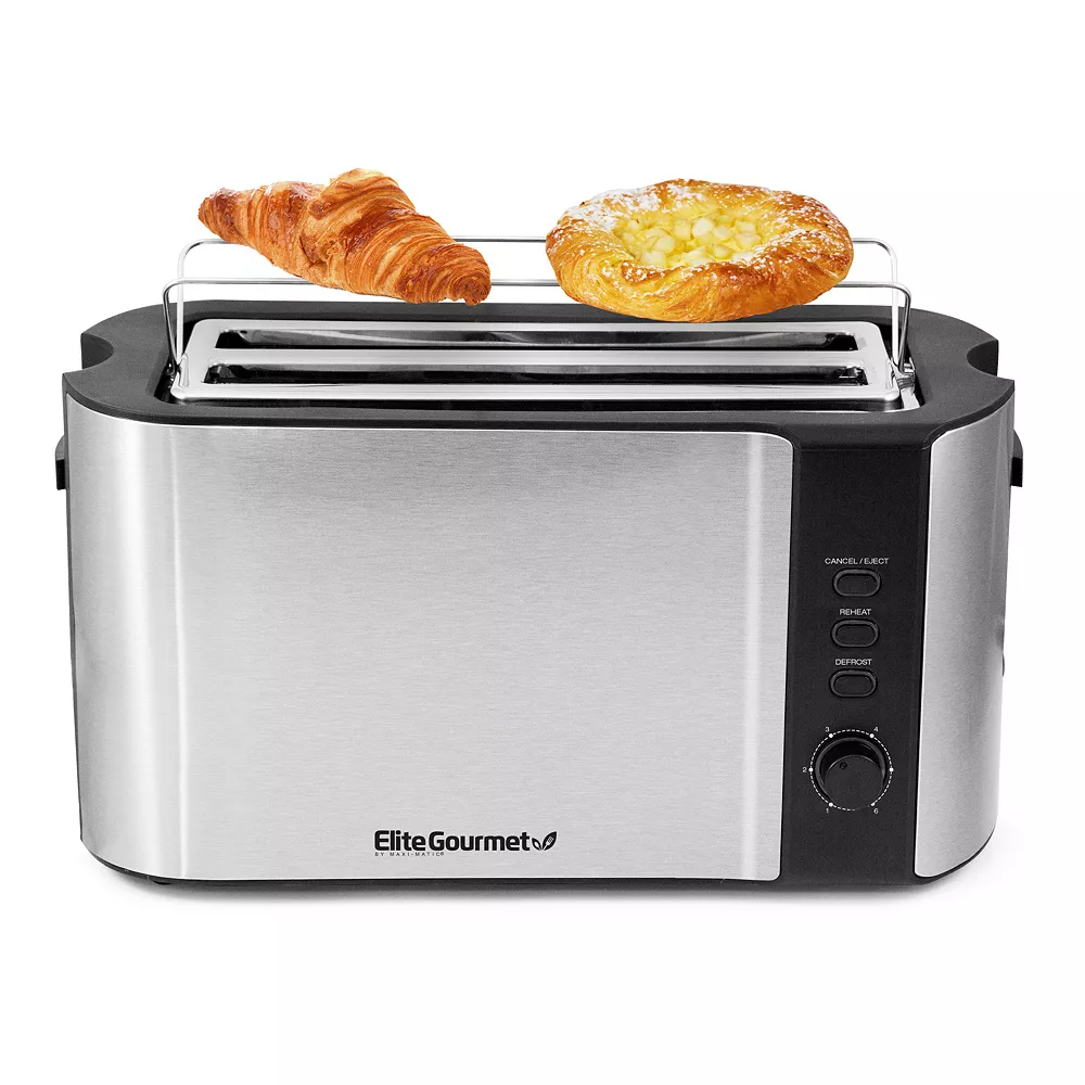 With a sleek brushed stainless steel exterior and four extra-wide slots, this multi-function toaster by Elite Gourmet is an essential in every modern kitchen.