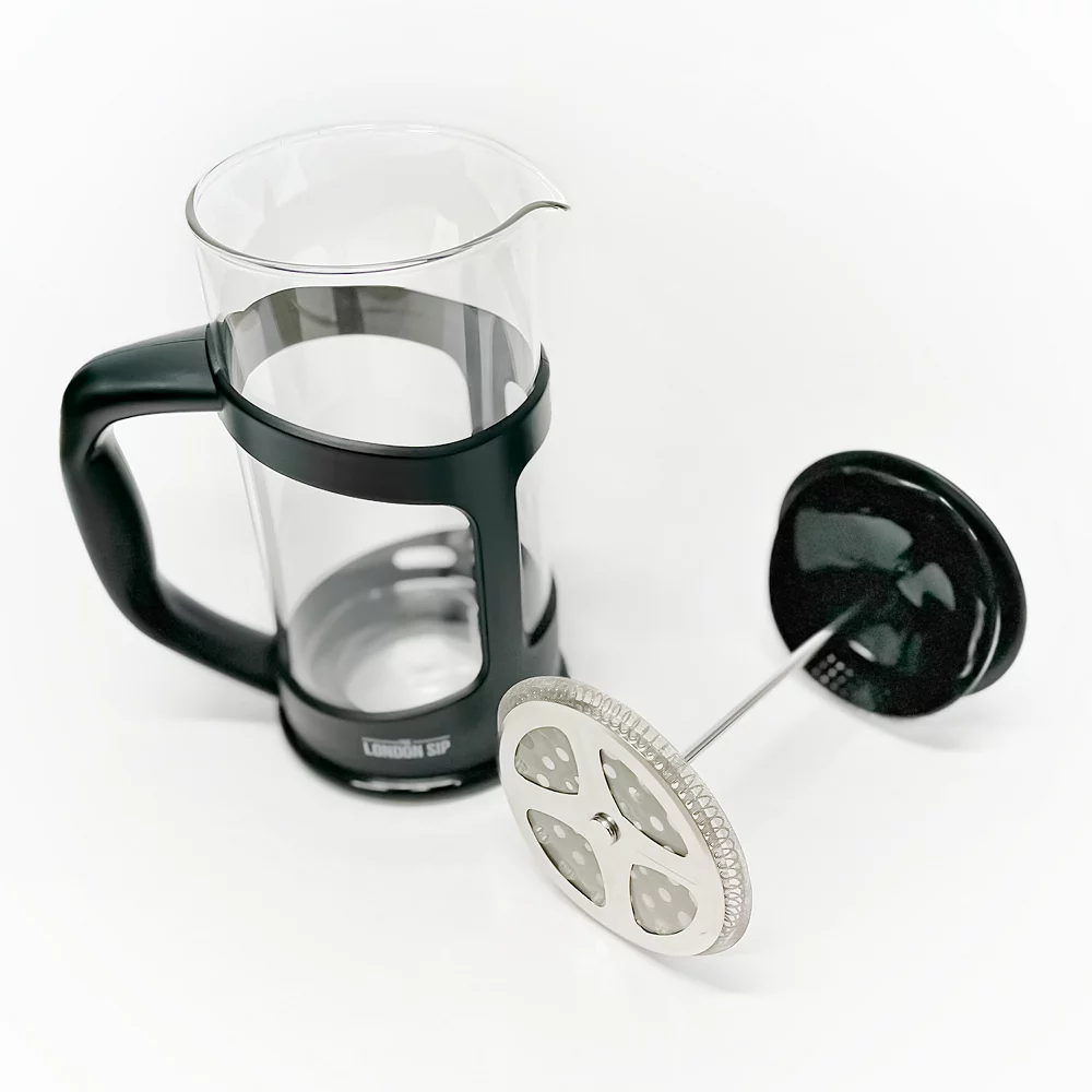 The Escali French Press is made from durable borosilicate glass which is shock resistant, making it safe for extremely hot liquids. The glass carafe and high quality stainless-steel of the filtration system will not impart flavors into your tea or coffee.