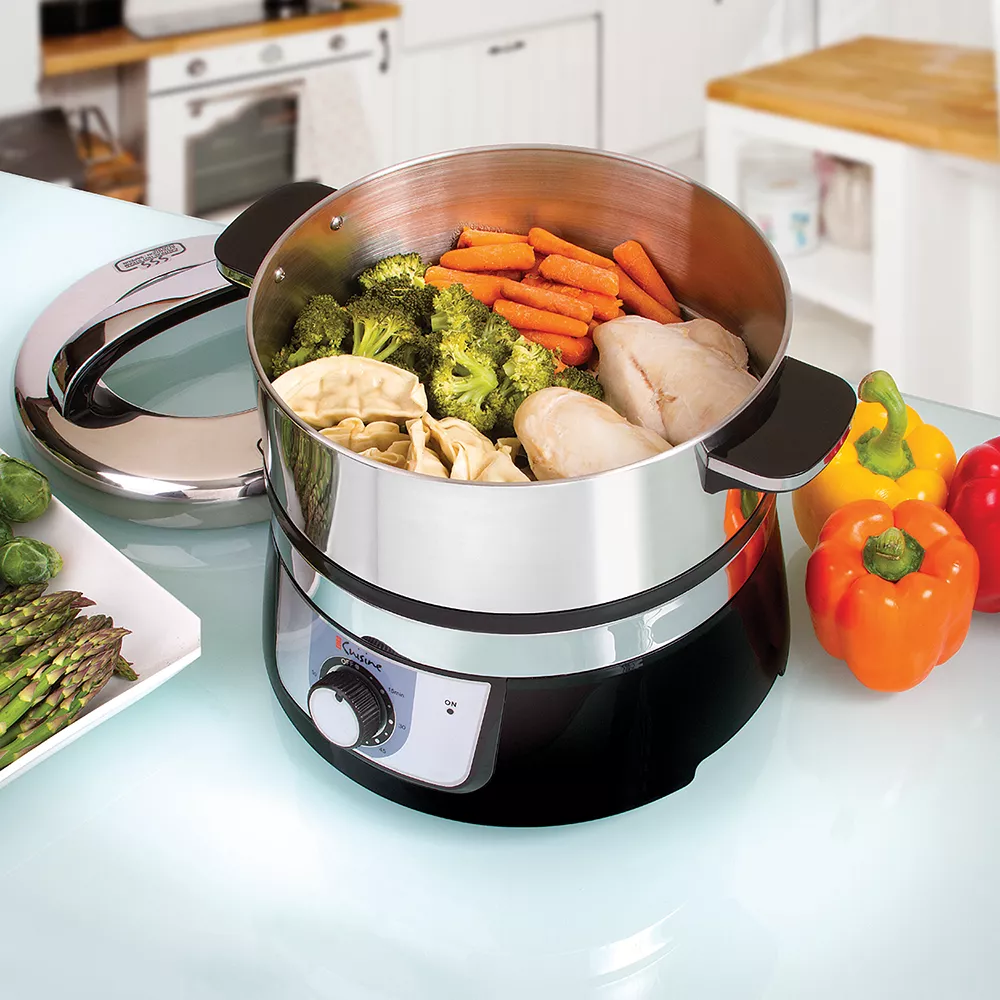 Enjoy healthy vitamin-packed foods right on your counter-top with this Stainless Steel Electric Steamer by Euro Cuisine.