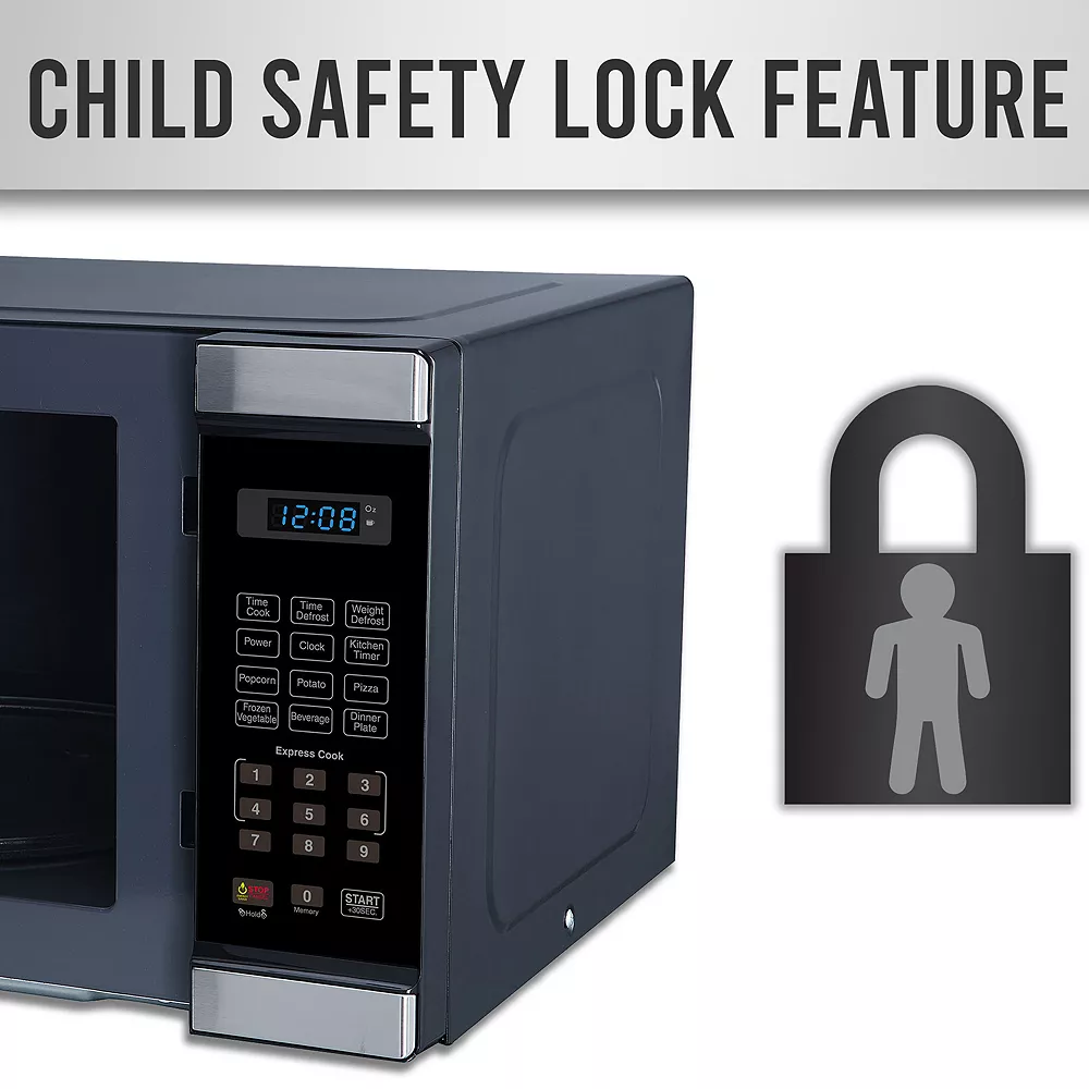 - With 1.1-cu. ft. of cooking capacity, a sleek brushed stainless steel exterior and 10 power levels, this counter top microwave delivers power, style and convenience to any kitchen