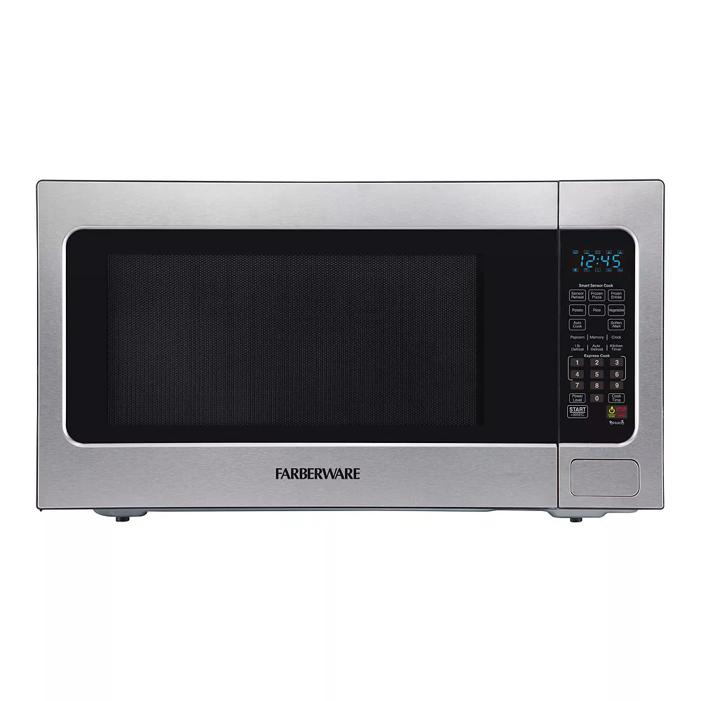 The Farberware Professional 2.2 Cubic Foot 1200-Watt Microwave Oven with Smart Sensor Cooking delivers power, style, and convenience with a sleek Stainless Steel design to complement your kitchen.