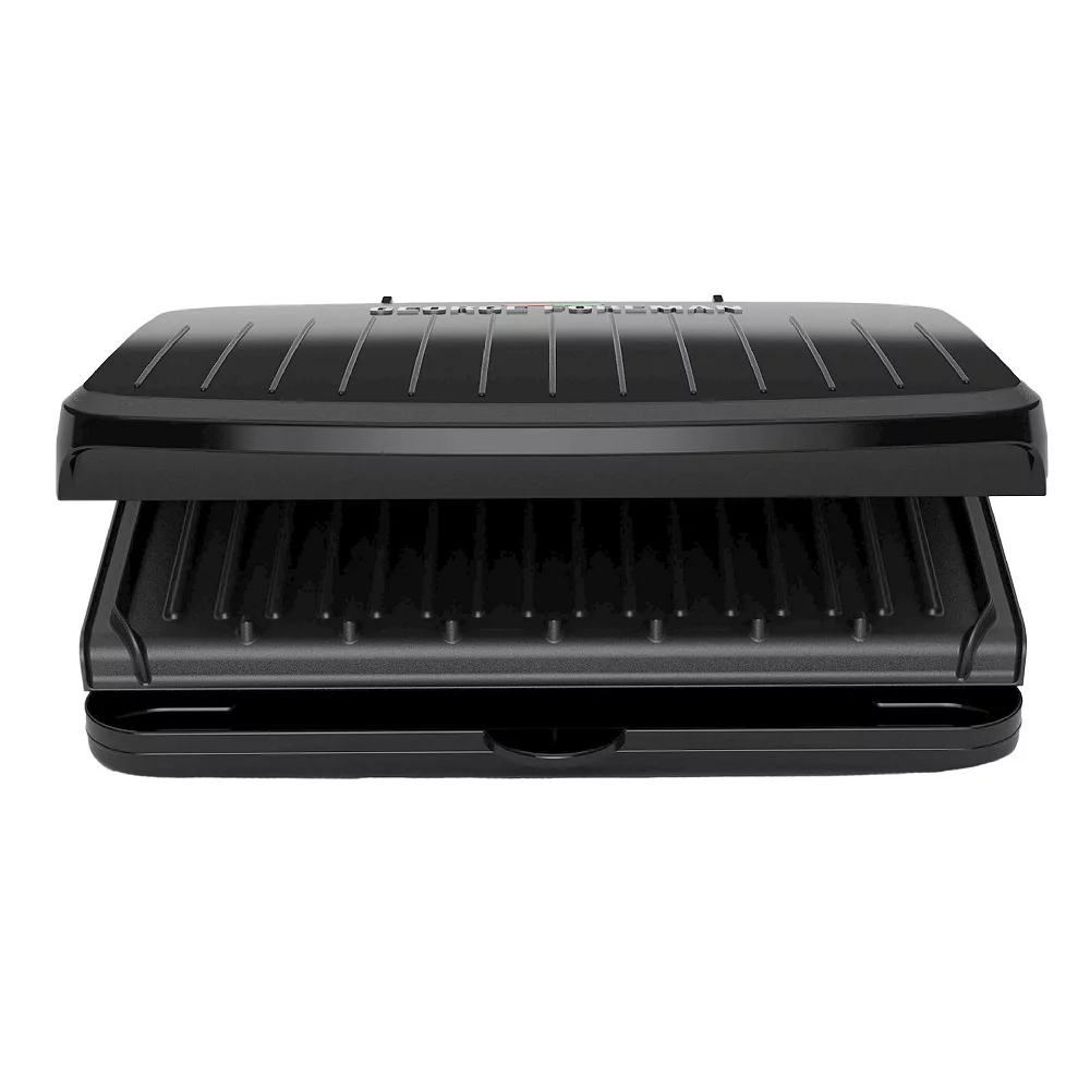 Cook up to five servings of your favorites without crowding the countertop, thanks to the George Foreman electric indoor grill and panini press. The new space-saving design provides 75 sq. in. of cooking surface to grill tasty burgers, chicken, fish, Panini, vegetables and more!