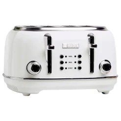 Introducing the stylish Heritage range of 4-slice toasters by Haden. With a traditional design and shape, this beautiful 4-slot toaster features convenient cancel/defrost/reheat settings, a self-centering function, and a removable crumb tray for easy cleaning.