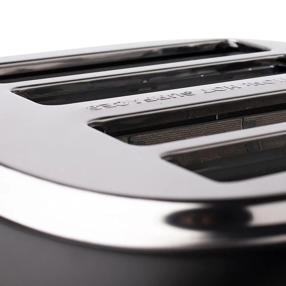 - Stylish 4-slice stainless steel toaster with extra-wide slots for thick bread slices and bagels