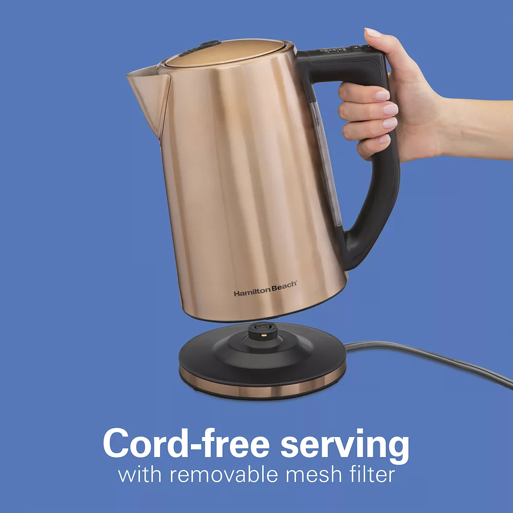For easy and safe cord-free serving of hot water for your favorite beverages, this Hamilton Beach kettle is a must-have.