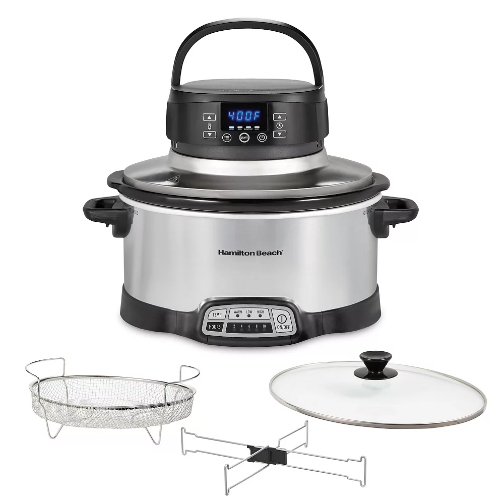 Enjoy the versatility of two appliances in one with the multifunctional Hamilton Beach 6-qt. air fry slow cooker. With double-duty appliance lets you air fry and slow cook with more confidence – and more flavor.
