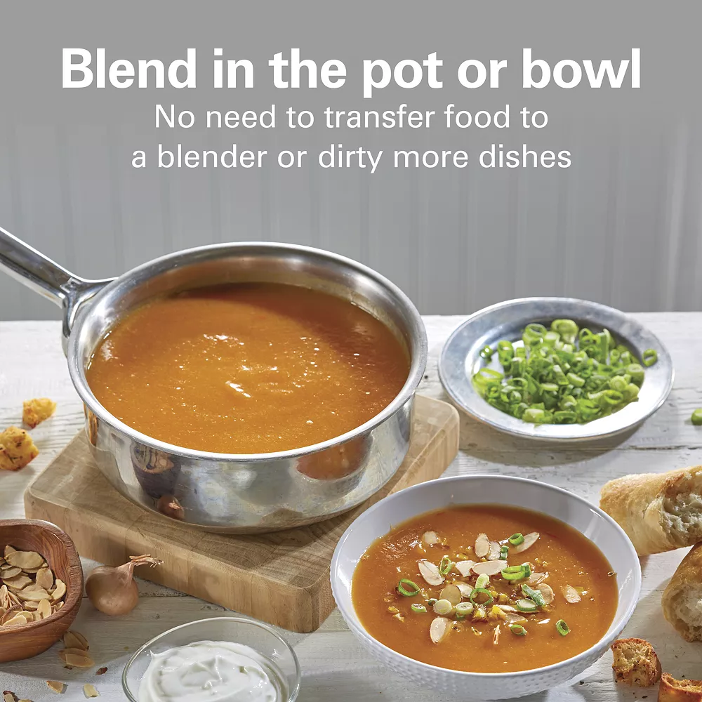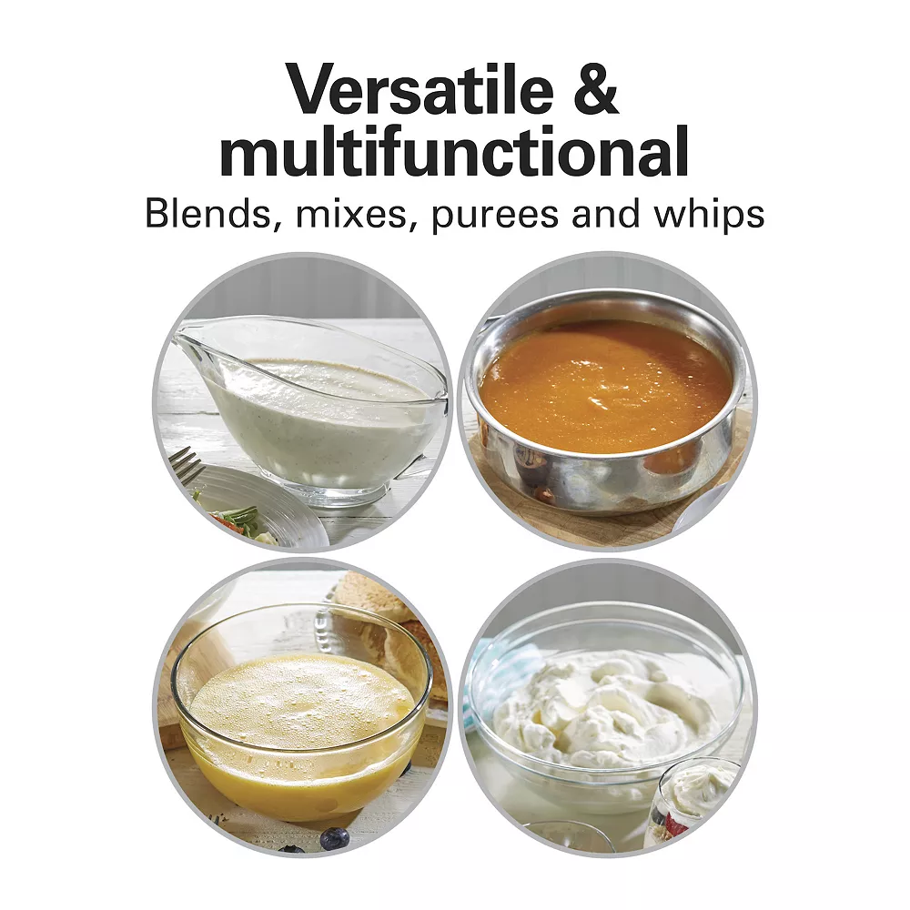 Blend, mix and whip up delectable ingredients with this all-in-one hand blender from Hamilton Beach.