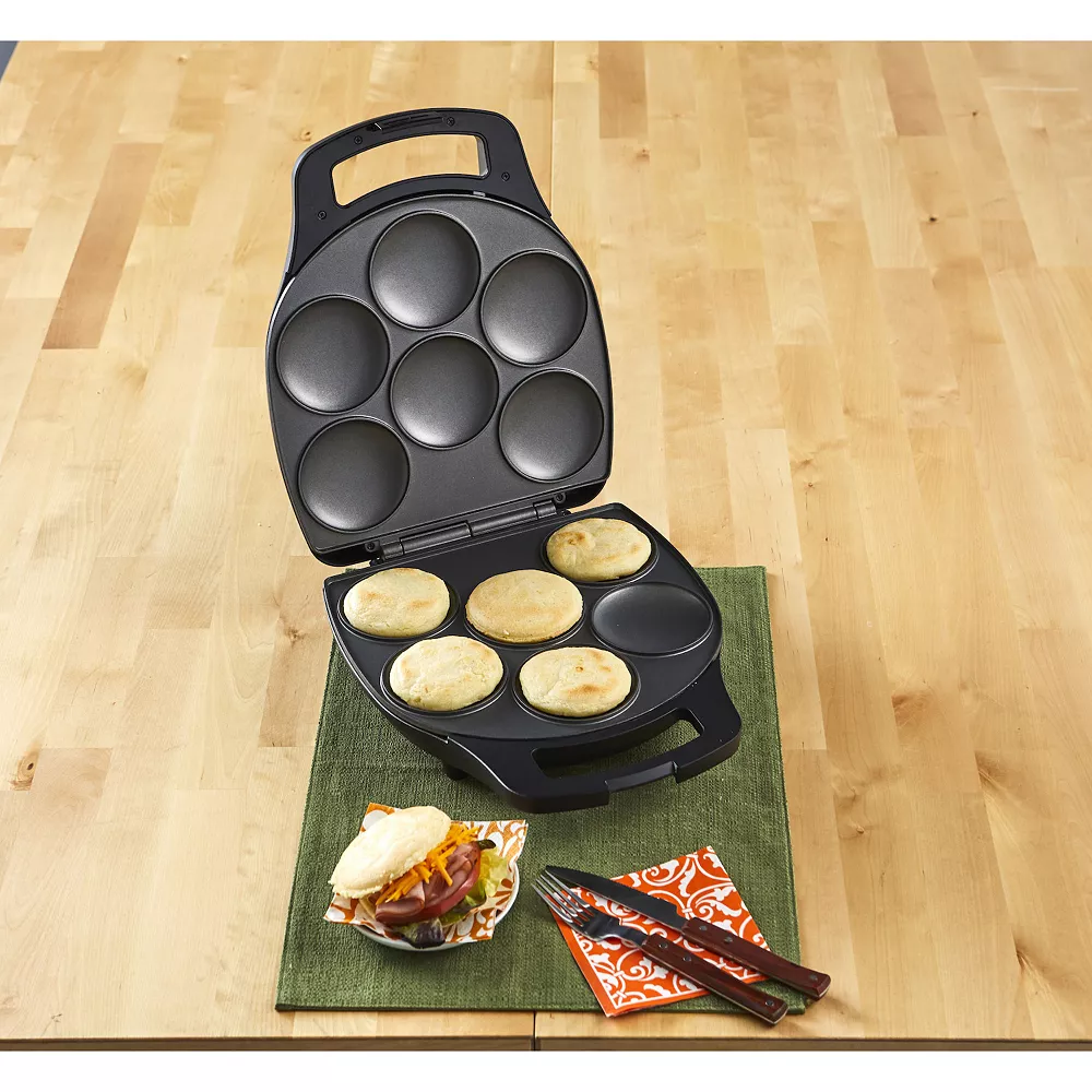 The IMUSA Electric Arepa Maker makes it easy to prepare traditional, homemade arepas. It also allows you to make corncakes, pastries, pancakes, or even baked eggs!