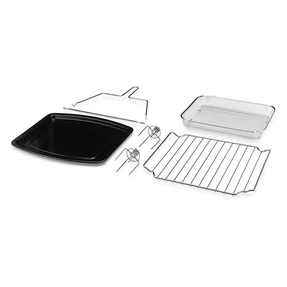 - Oven rack, cooking pan, air fryer basket, rotisseries spits and forks and rotisserie lift