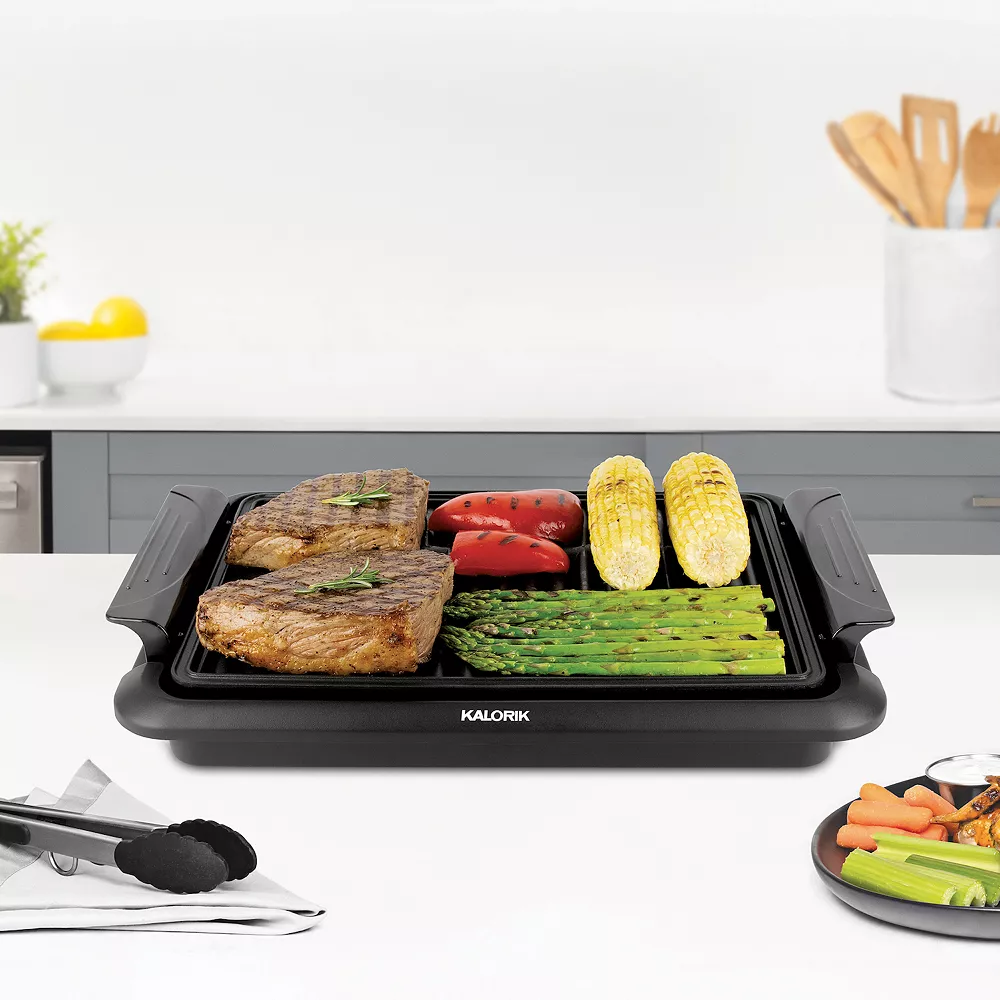 Tradition meets innovation in the Kalorik electric indoor grill. Bring all your favorite cookout foods indoors.