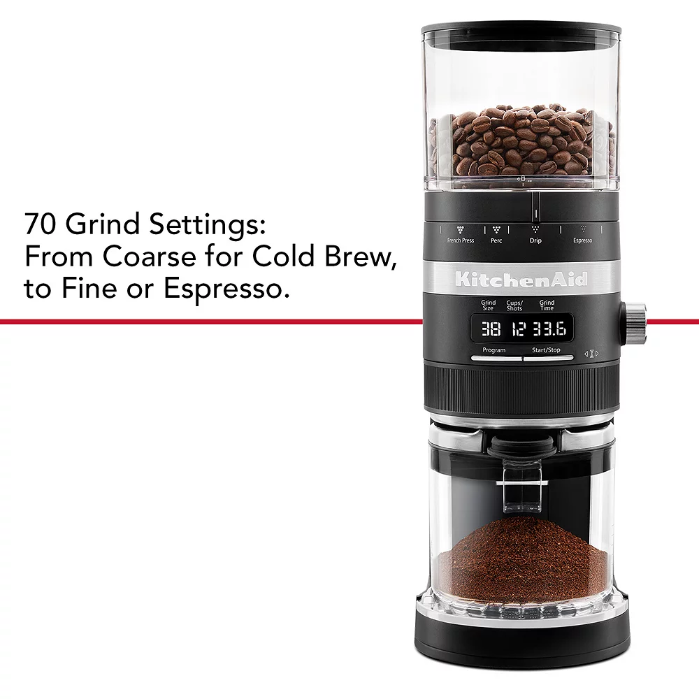 - Getting consistent grind size means delicious brewing every time – achieve consistent grind sizes for all brew methods from French Press to Espresso with the KitchenAid® Burr Coffee Grinder