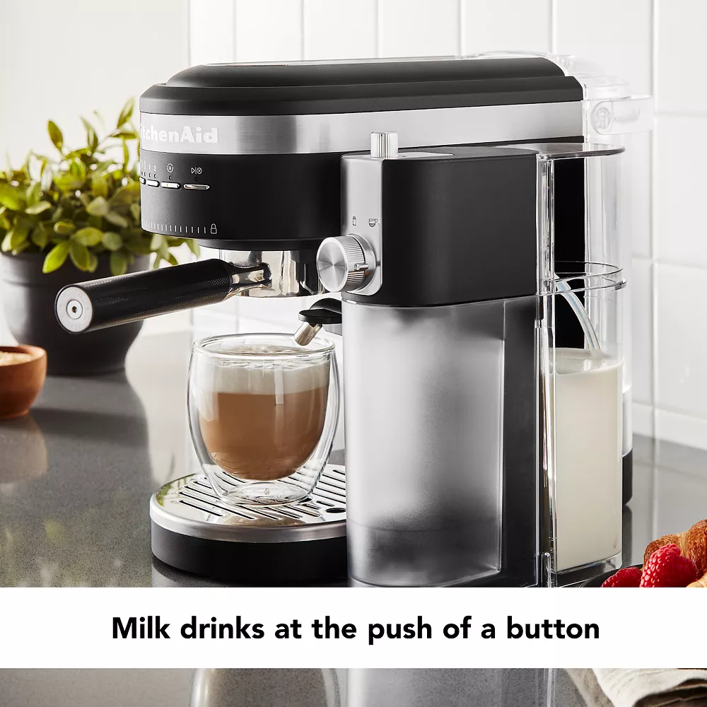 - Add the KitchenAidBurr Coffee Grinder (model no. KCG8433, sold separately) to your daily espresso routine, for authentic tasting results.