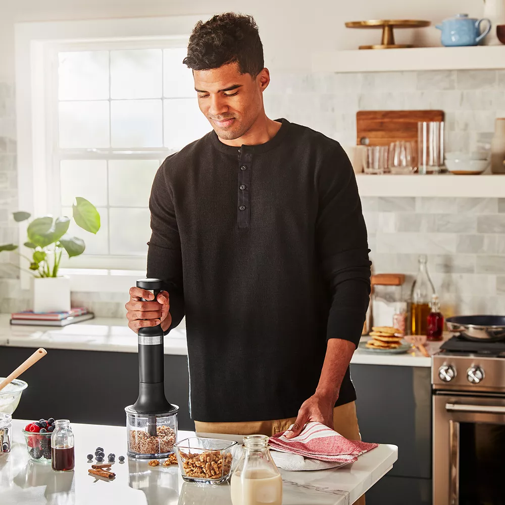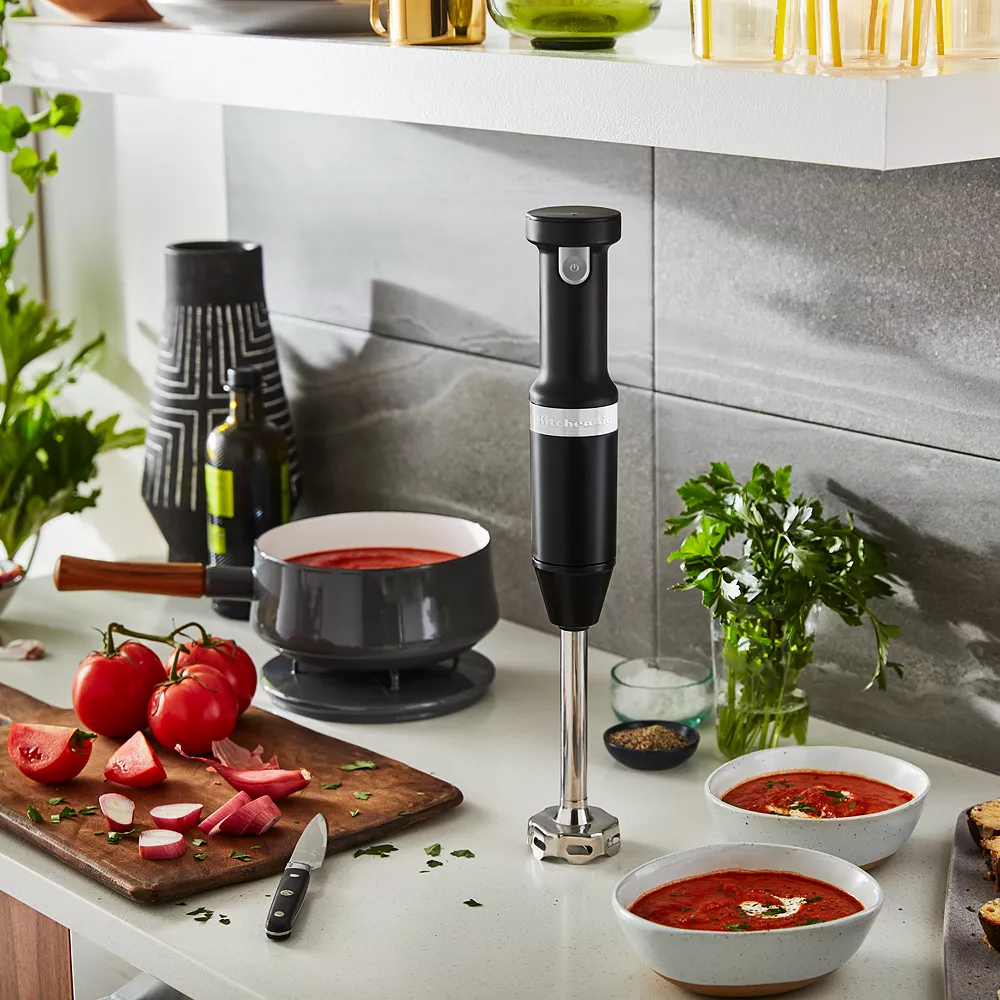 All the power you expect, without the cord. Go w ambition takes you with the Cordless Hand Blender from KitchenAid. Designed with a powerful rechargeable Lithium Ion Battery, the new cordless hand blender delivers optimal runtime and performance, so you can cook wver, whatever, and however you choose.