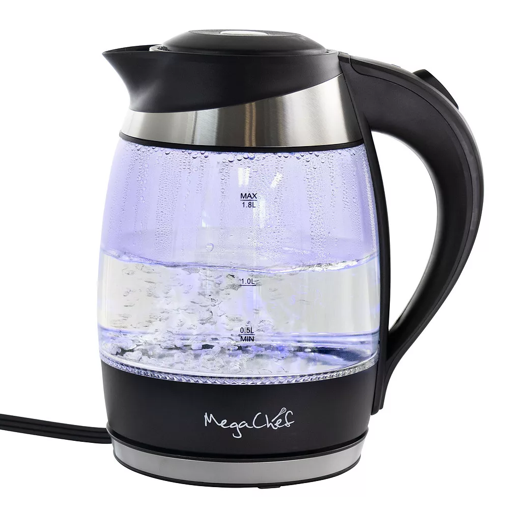 A simple, easy-to-use design, convenience and technology come together in this MegaChef electric tea kettle.
