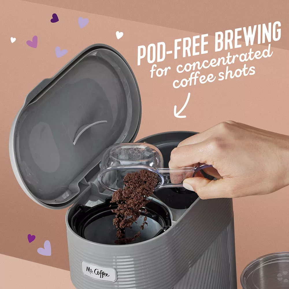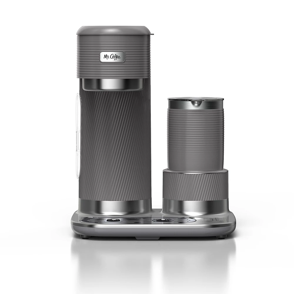 With its convenient 4-in-1 functionality, the Mr. Coffee Single-Serve Latte Lux Iced and Hot Coffee Maker makes it easy to brew your favorite coffeehouse drinks right at home. Its textured design, with chrome elements and capacitive touch panel, will elevate your kitchen decor.