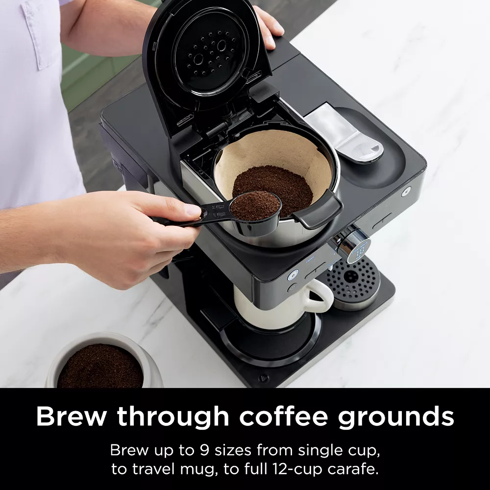 - Ninja 12-Cup Glass Carafe, Fold-Away Hot & Cold Frother, Ninja Smart Scoop, Removable Brew Basket, 20 Used Capsule Storage, Paper Filter Kit