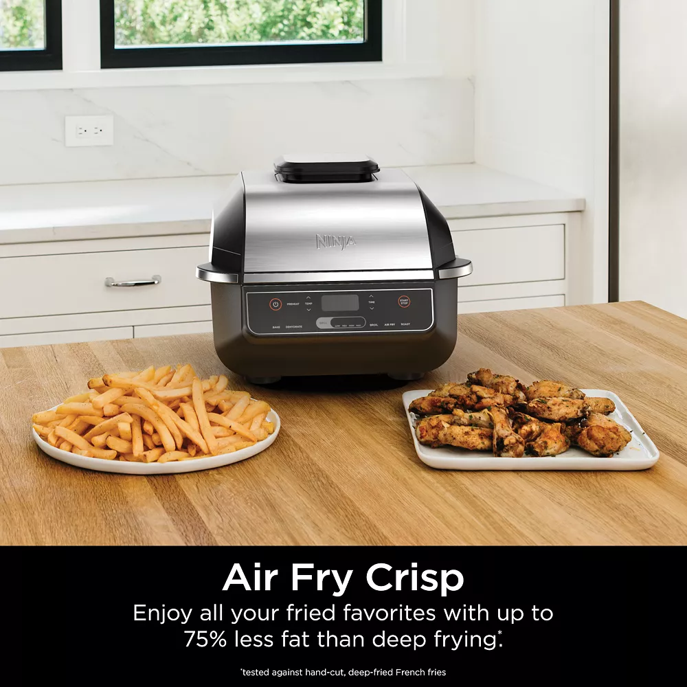 - The Ninja Foodi Grill. The grill that sears, sizzles, and air fry crisps. New exterior look with all the great functions you love, from the original Foodi Grill.