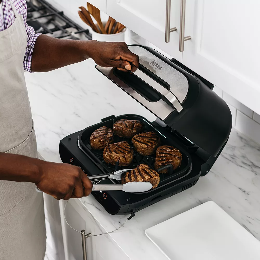 The Ninja Foodi Smart XL Grill is the indoor grill that sears, sizzles and air fry crisps. With an XL capacity and innovative Smart Cook System, grill even more and achieve the perfect doneness from rare to well done at the touch of a button.