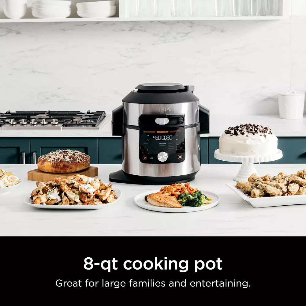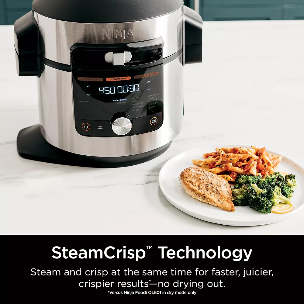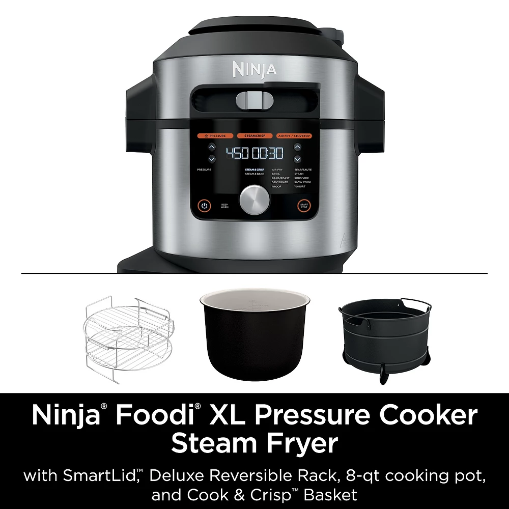 Meet the Ninja Foodi 14-in-1 8-qt. XL Pressure Cooker Steam Fryer with SmartLid. The pressure cooker that steams and crisps. SmartLid Slider unlocks pressure cooking, air frying, and SteamCrisping, all under one SmartLid.