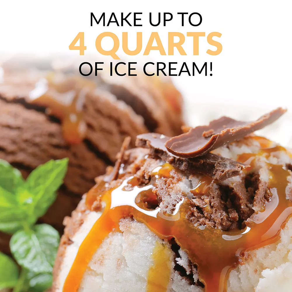- Great for party time or snack time, this unit makes 4-quarts of delicious ice cream, frozen yogurt or gelato – enough to feed everyone!