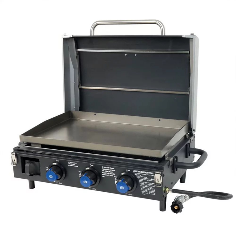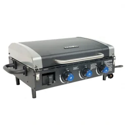 - Cook breakfast, lunch, or dinner while enjoying the outdoors with this portable 3-burner griddle