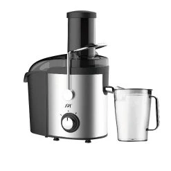 Housed in attractive die cast aluminum housing, this powerful 800W juice extractor will add beauty and function. The unit’s extra large 3? feed tube makes it easy to process whole fruits and vegetables, without pre-cutting or peeling. Features stainless steel elements and dishwasher safe parts for quick cleanup. Accessories include: 1.1 liters juice jug with froth separator, cleaning brush and pulp container.