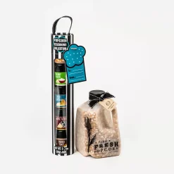 Kernels, Seasonings…what else do you need? Turn your favorite snack into something truly special with a little help from the magic of these signature seasonings and mini jug of gourmet kernels. A fun little way to add some magic to movie night!