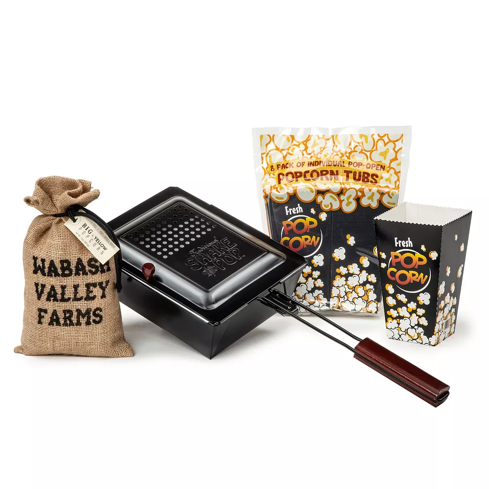 - Popper has a 16.5” long handle with a wooden grip so you can pop your snack over a campfire, backyard grill, or fireplace. It keeps your hands safe as you pop away.