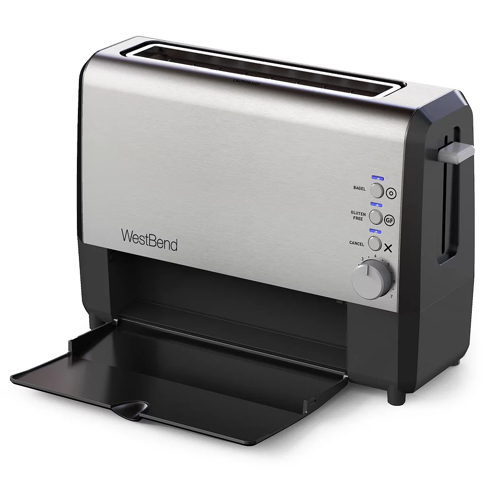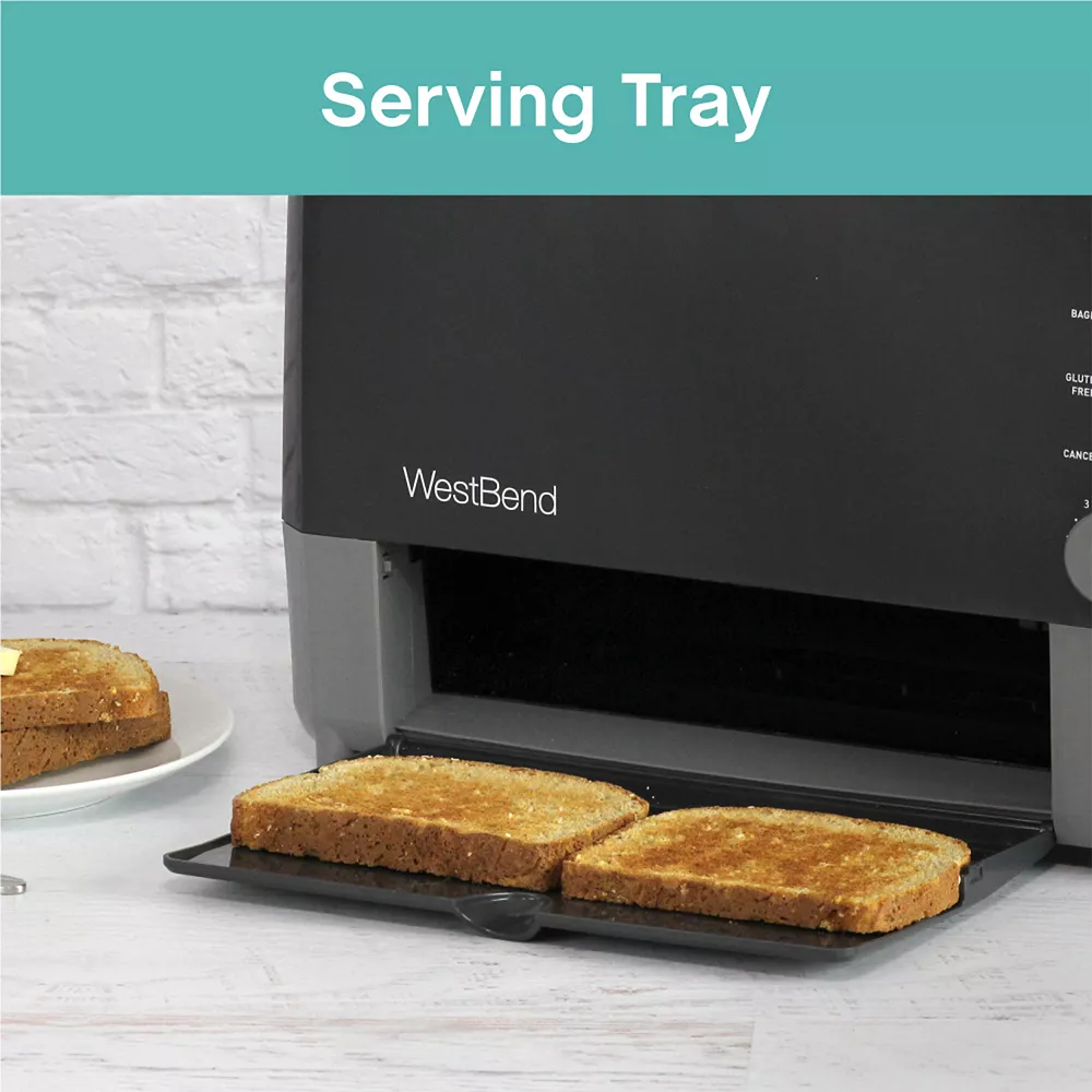 Watch as your toasted food perfectly presents on this West Bend QuikServe Toaster’s side serving tray that closes when not in use.