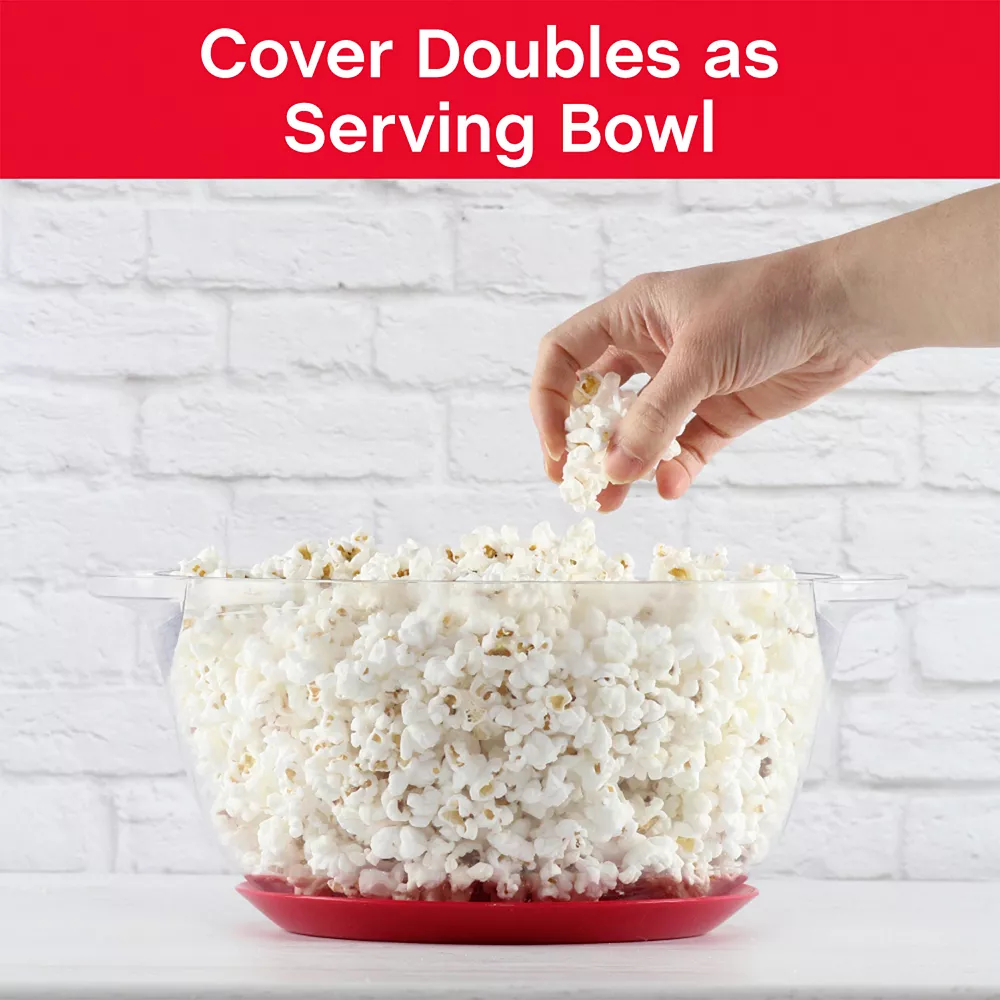 - Clear, vented cover can be used as a popcorn serving bowl.