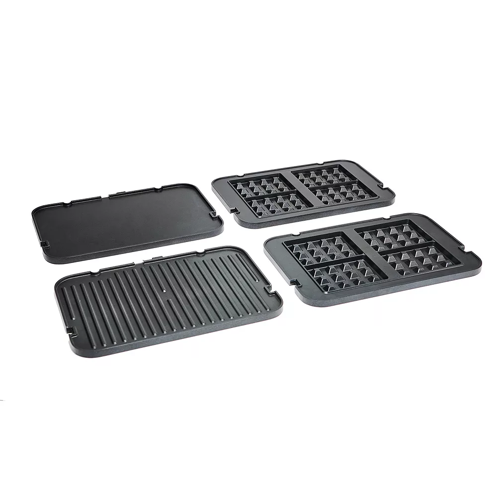 - 2 egg rings, spatula/tongs and grill, griddle & waffle plates