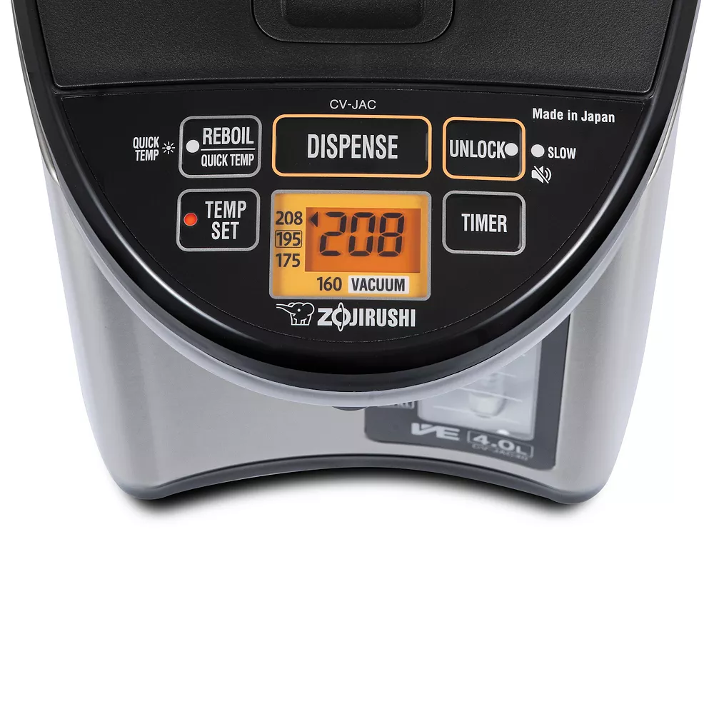The VE Hybrid Water Boiler & Warmer uses VE (Vacuum-Electric) hybrid technology to keep water warm with minimal electricity, and features an optional Quick Temp mode that significantly reduces heating time.
